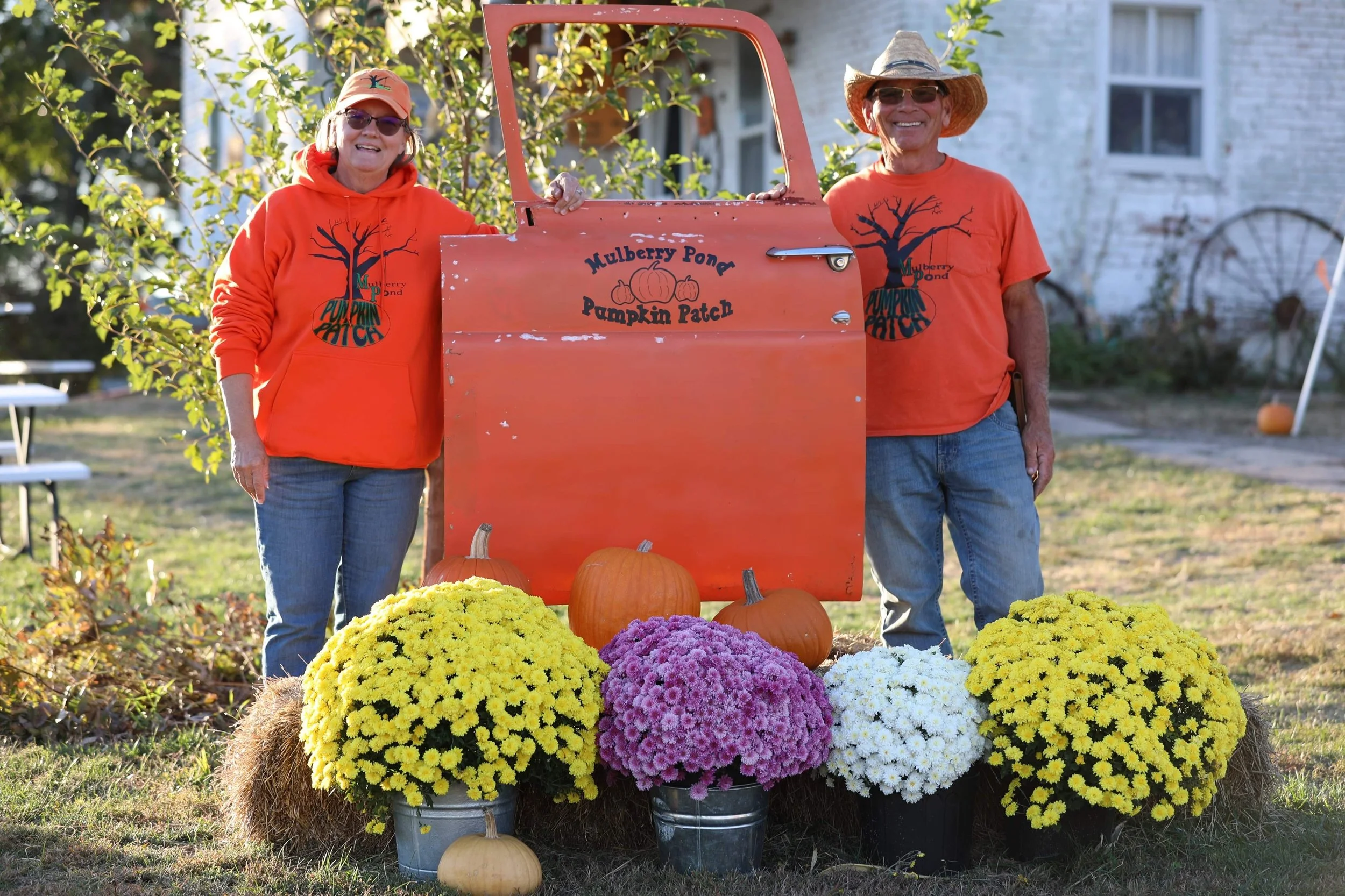 Owners Meryl and Staci Charles bought Mulberry Pond in February of 2008. The property, with its 10 acres and original brick home built by settlers in 1870, also included the man-made pond. In 2009 after renovating the property, they grew and sold around 60 pumpkins from their garden.